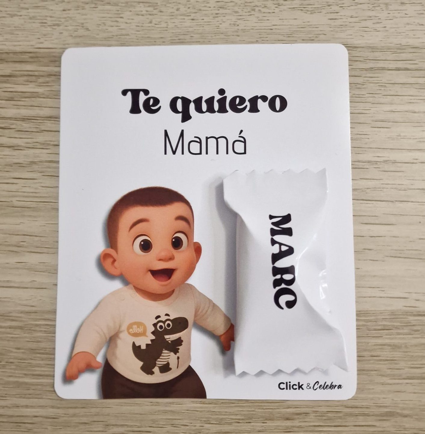 Creamos una foto del o la protagonista en estilo Píxar y añadimos chuches o chocolatina, para crear un recuerdo único y lleno de cariño.